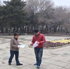 支部所有成员查阅资料、制作宣传板和宣传册等做了充分的准备工作。2017年11月7日下午1点,我支部党员和部分研究生带着宣传板和宣传册到南湖向广大人民群众进行宣传雾霾的防护知识。通过发放宣传手册,进行口头宣讲,现场解答群众提出的问题等形式,向群众讲解雾霾的主要形成原因、雾霾对人体造成的伤害以及如何防护,减少吸入雾霾、如何选择口罩,如何锻炼身体,如何减少雾霾等知识。 许多群众同各位党员对雾霾的形成进行了探讨。