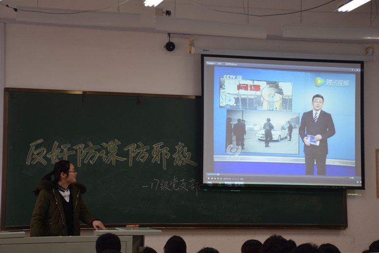 2017级党支部于11月29日下午在中心校区李四光教学楼213教室召开了以“反奸防谍防邪教”为主题的党日活动,2017级本科生党支部书记兼2017级辅导员郭倩君主持开展了本次活动,2017级放射二班兼职班主任申延男、医药信息班兼职班主任冯佳出席了本次活动。