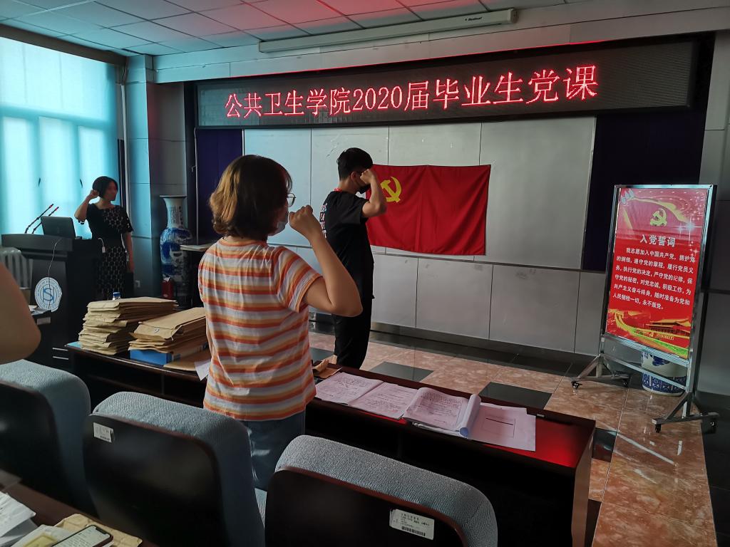 首先,刘丽书记带领毕业生党员重温了入党誓词。面对鲜红的党旗,党员们高举右拳,庄严宣誓。神圣的誓词又一次点燃了毕业生对党组织、对国家无私奉献的热情和激情。