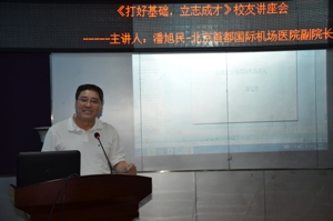1992级放射医学专业班长潘旭民,现任北京首都国际机场医院副院长兼放射线科主任。讲座的题目是“打好基础,立志成才”。聆听讲座的是2013级,2014级放射专业全体在校生。