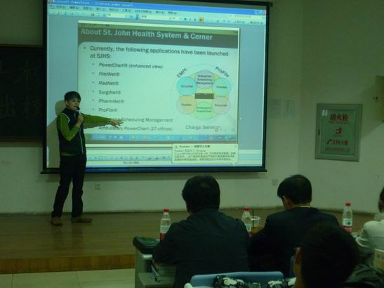 在报告的最后进入互动阶段,王晓健结合自己离开母校的近30年在海外发展的心路历程,向学弟学妹们讲述了自己学习、工作和生活的一些感想和体会。现场的同学频频举手发问,提出了自己所关心的问题,王晓健一一回答了同学们提出的问题。王晓健的报告轻松活跃,内容充实,令在场的同学深受教益,现场气氛热烈,掌声不断。2个小时的报告和现场互动交流很快过去。最后,于洗河副书记兼副院长讲话,对王晓健女士回母校与同学们进行交流表示感谢,希望同学们能够坚定专业思想,掌握专业知识和技能,毕业后能够成为我国医学信息领域的栋梁之才。
