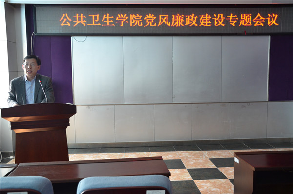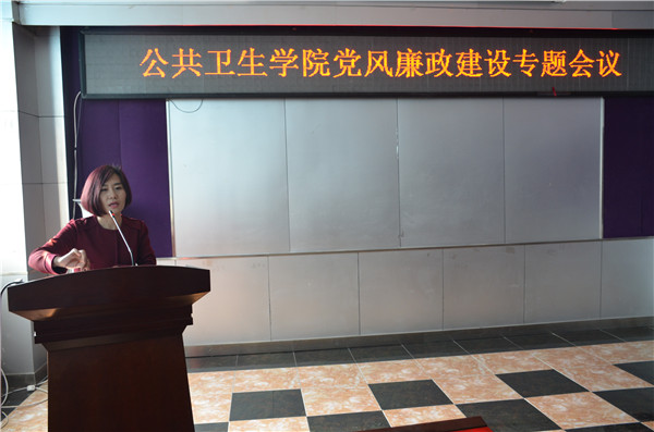 党委在学院三楼报告厅召开了党风廉政建设专题会议,院领导班子、党委委员、纪委委员、三委会主任、系主任、科主任、中心主任、支部书记、全体行政管理人员参加了会议。会议由副书记、副院长兼纪委书记刘丽主持。