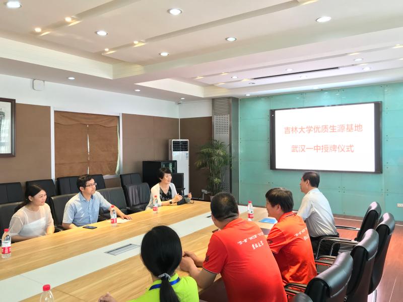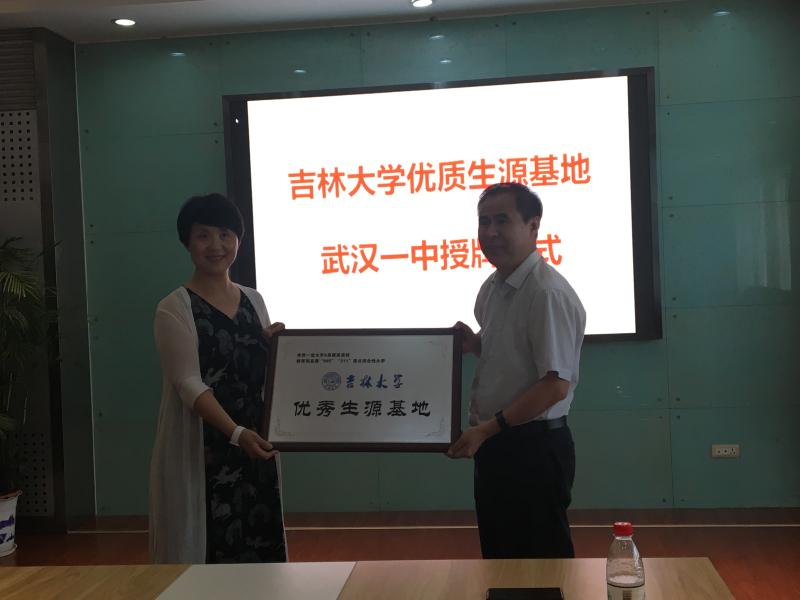 的优秀师生来武汉市第一中学开展科普讲座,希望两校之间加强沟通和联系、增进彼此了解。会后,双方举行了“优秀生源基地”授牌仪式。