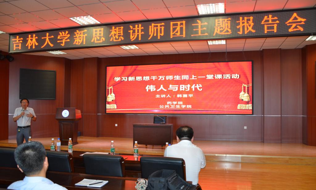 韩喜平教授以《伟人与时代》为题,以马克思、毛泽东、邓小平、习近平四个伟人为主线,结合他们所处的时代特色,系统地讲解了马克思主义、毛泽东思想的理论基础、理想信念;邓小平对改革开放40年来取得巨大成就的贡献;习近平在纪念马克思诞辰200周年大会上重要讲话精神和新时代来临的标志等。用一个又一个伟人的真实故事,深入浅出的讲述了新思想的理论基础,以及对马克思主义、毛泽东思想等理论的继承和发展,指明了学习新思想的方向和形式,激发了广大师生学习新思想的热情。