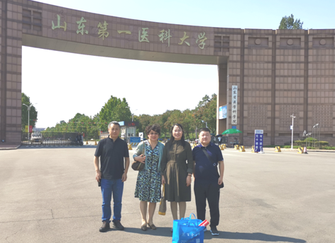 放射医学系主任金顺子教授带队,放射化学教研室主任石磊教授、国家卫健委放射生物学重点实验室副主任兼放射生物学教研室主任申延男副教授、辐射防护学教研室主任杨湘山副教授一行四人分别到山东第一医科大学放射学院和擦边短剧