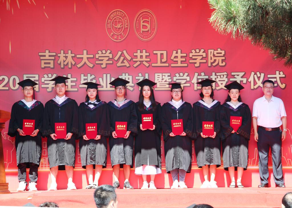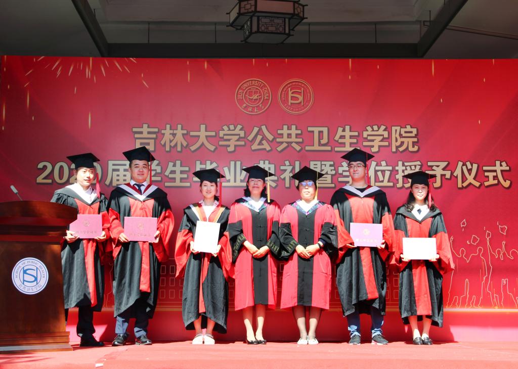 伴随着庄严的国歌声,毕业典礼正式拉开序幕。首先,寇长贵副院长和于洗河副院长分别宣读了2020届本科毕业生学士学位授予决定及优秀本科生毕业名单2020届博士、硕士学位授予决定及优秀研究生毕业生名单。随后,由魏国志副院长为优秀本科生毕业生颁发荣誉证书,刘晋宇副院长为优秀研究生毕业生颁发荣誉证书。紧接着,学位委员会主任刘雅文老师学术委员会主任李娟老师一同为毕业生授予学位,颁发毕业证书并合影留念