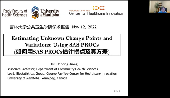 为提升学生的统计分析能力和促进学院学科发展,受学校国际合作与交流处校级高端项目资助。2022年11月12日,学院特邀请加拿大曼尼托巴大学公共卫生学系蒋德鹏教授线上进行高级生物统计方法讲座。蒋教授现为加拿大曼尼托巴大学公共卫生学系终身教授,兼任曼尼托巴大学统计咨询组负责人,同时也是中国教育部“春晖计划”特邀专家。讲座由擦边短剧