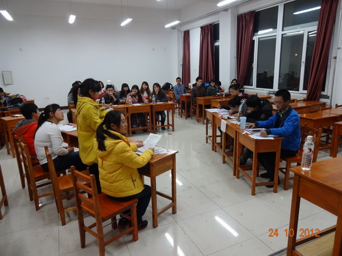 团委志工部承办的新生辩论赛海选复赛在李四光楼111教室举行。