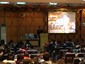 于新民校区一教401教室开展了消防安全教育专题讲座。此次会议特邀请新民校区安全防火科的安志成科长为同学们进行消防安全及防震知识的教育讲座,2010级、2011级300余名同学参加了此次会议。会议由团委书记、10及11级辅导员苏国范老师主持。