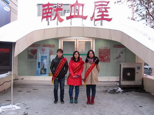 的四名志愿者同学在志工部的组织下,在长春市万达购物广场献血屋开始了本次志愿服务活动。