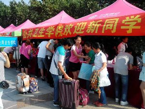 院学生会的同学们怀着满腔热情,搬运用具、搭好帐篷、摆好桌椅、布设展板、分发资料,开始了正式的迎新活动。当新生们陆续来到,公共卫生的同学们就抖擞精神、笑容满面、耐心细心地为新生们讲解各项入学事宜。领取新生档案、注册信息、发放银行卡、领取电话卡、新生体检及缴纳学费等流程依次有序展开,有条不紊。还有一些自愿加入到迎新工作的大三大四的学长学姐们,他们在一旁以亲和的态度和幽默的说话方式使新生迅速感受到了擦边短剧