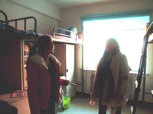 2012级学生辅导员郭倩君老师及学生会生活部部员对学院新民校区八舍的同学们进行了走访检查。