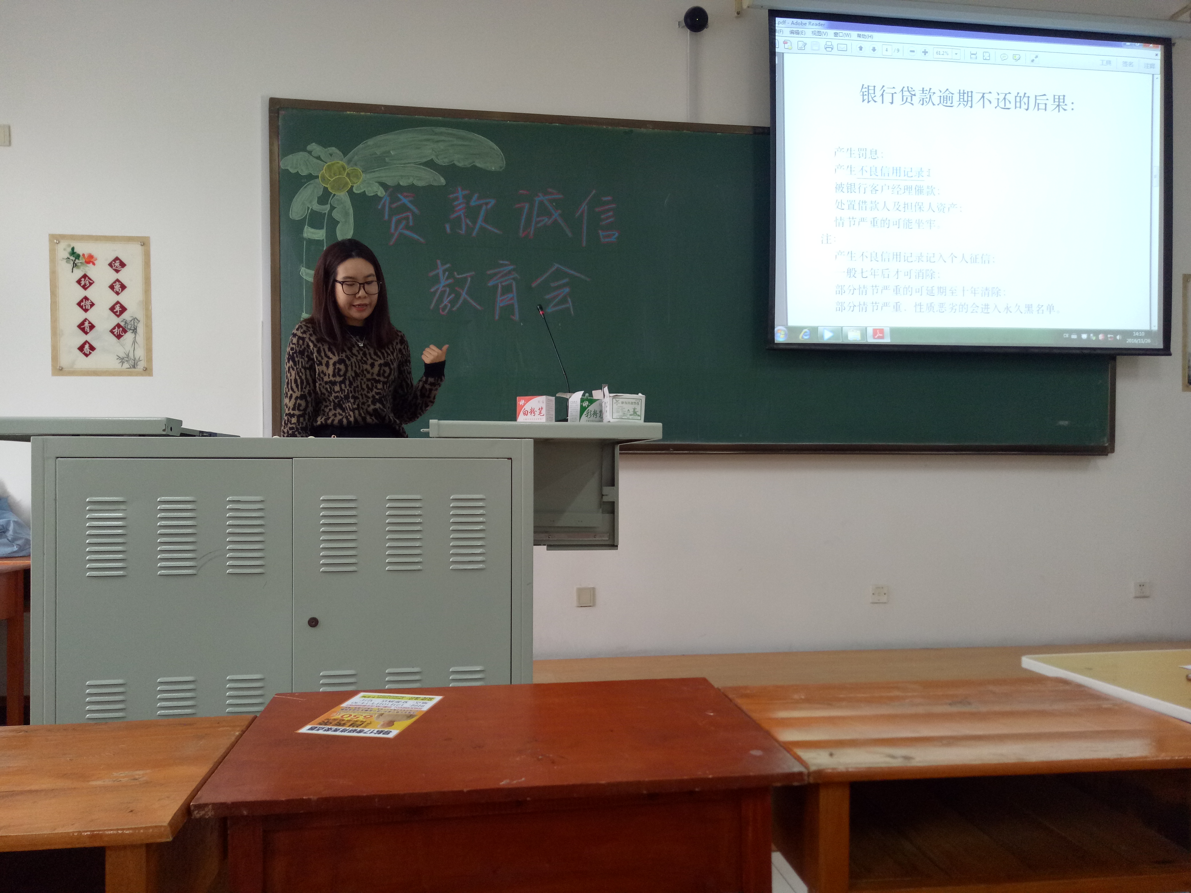 2016级新生在申请校园地贷款过程中的诚信意识,11月26日下午,学院于中心校区李四光楼314教室举行了学生贷款诚信教育会。活动有幸邀请到中国银行刘营女士为同学们讲解关于校园地贷款的相关事宜,擦边短剧
