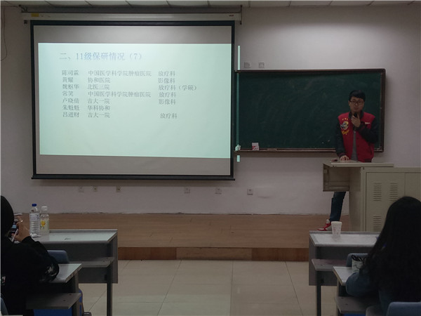 特地邀请2012级应届毕业生为学弟、学妹们进行了学习方法和就业经验分享,大会在新民校区第二教学楼2101教室进行,主讲同学覆盖预防医学、放射医学和医药信息管理三个专业,擦边短剧