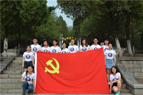 2017年暑期河北唐县社会实践小分队一行在学院党委副书记兼副院长、2014级辅导员刘丽,团委书记兼2015级辅导员苏国范和2016级辅导员霍睿的带领下,追溯着历史的足迹,来到河北唐县牛眼沟村瞻仰诺尔曼·白求恩和柯棣华医生之墓、祭拜革命先辈英魂。