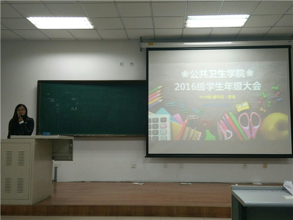 2016级学生年级大会于新民校区第二教学楼2202教室召开,会议由2016级辅导员霍睿主持,2016级全体学生出席参加。