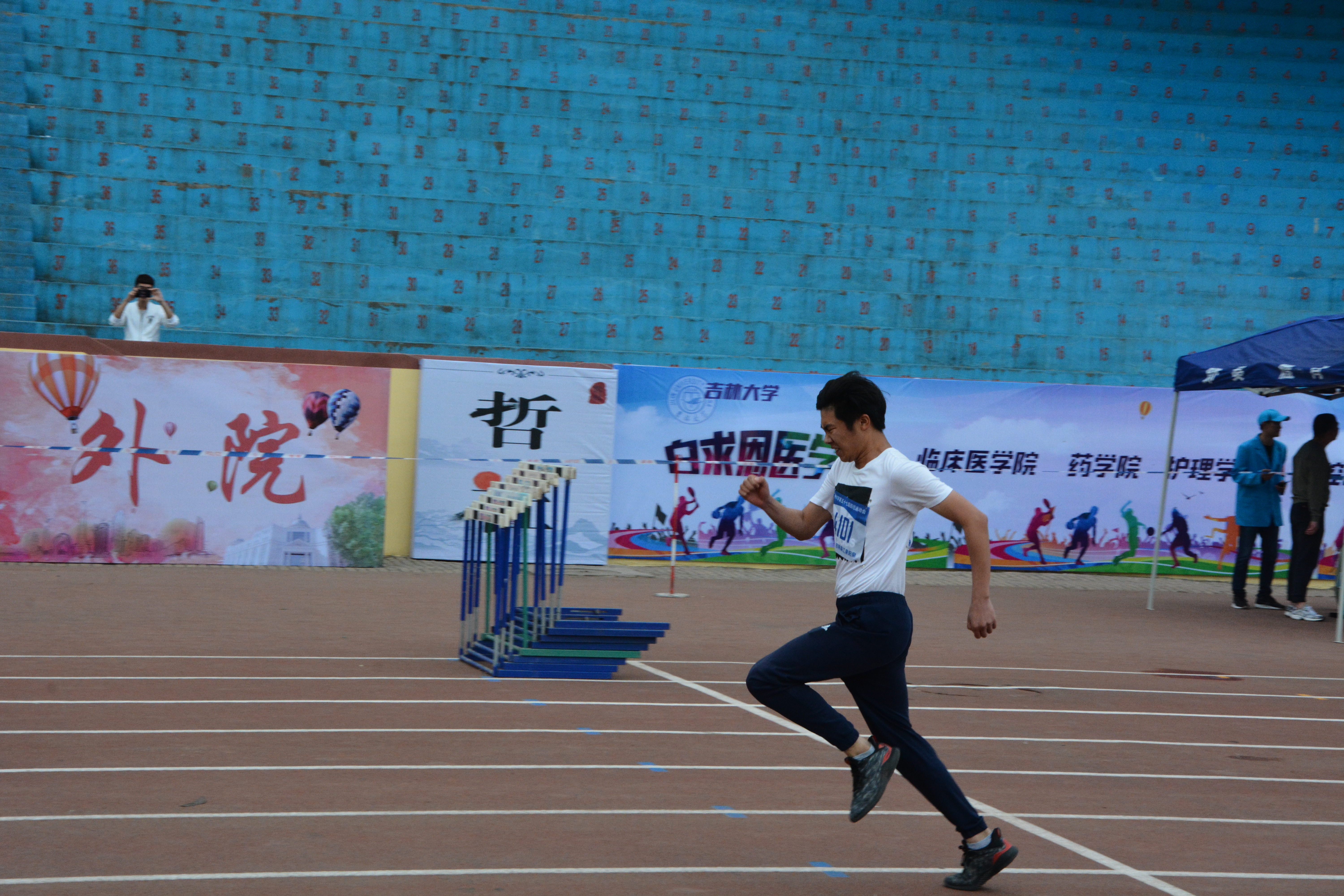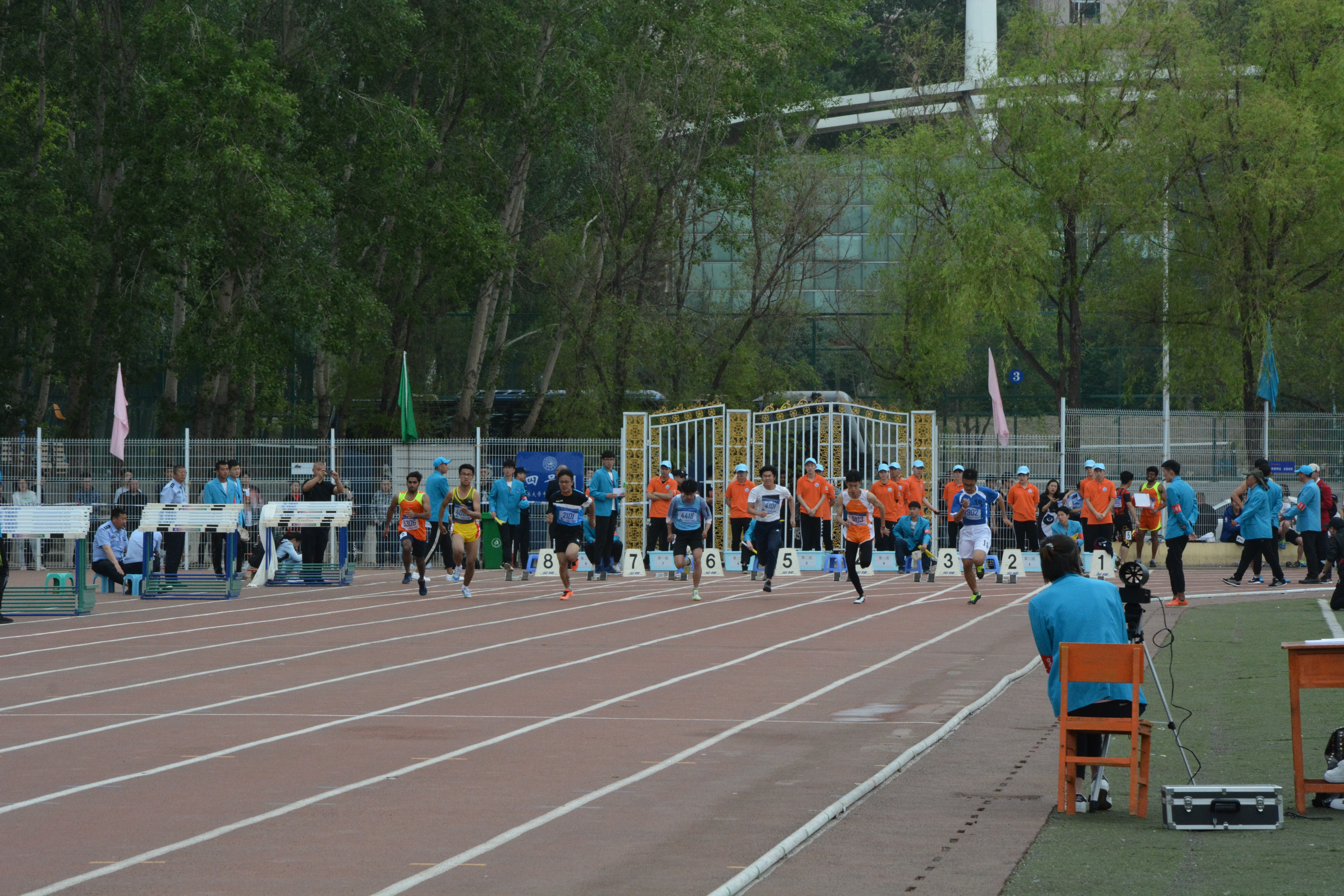 比赛前,运动健儿们个个精神饱满,摩肩擦掌,做着压筋,压腿等热身动作。在跑道外,场边的同学们纷纷为自己喜欢的选手加油,为各自学院的运动员摇旗呐喊,现场气氛十分热闹。上午八点整,随着裁判的一声枪响,运动员们像离弦的箭破风而去,擦边短剧