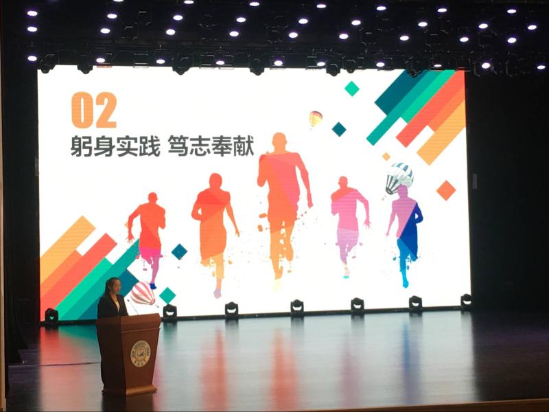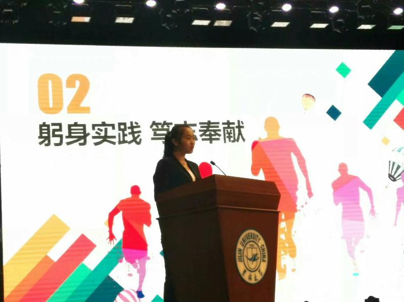 学生代表金晶向与会的各位领导和同学们介绍了在河北唐县葛公村的实践经历,讲述了白求恩精神带来的收获与感动,引发了全场强烈共鸣。