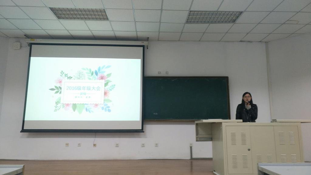 2016级学生辅导员霍睿主讲,2016级全体同学参与会议。