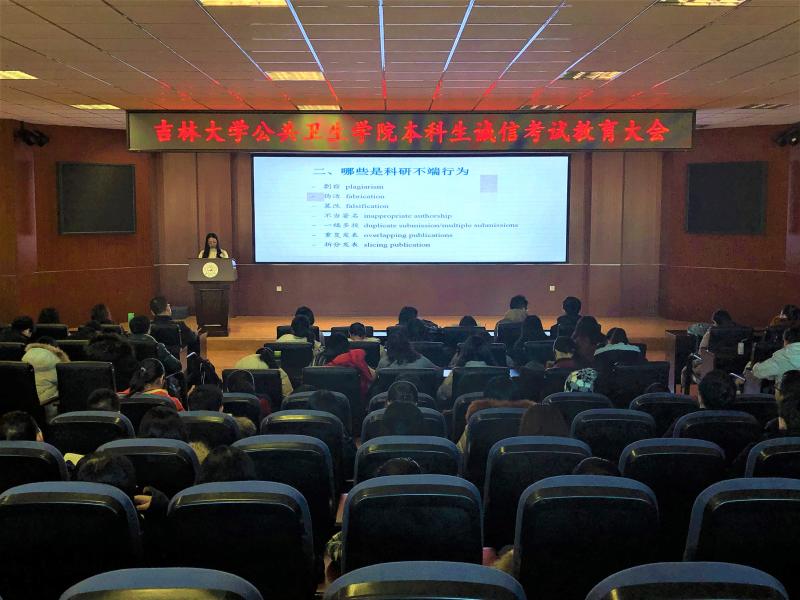 学生管理规定》和“六个严禁”、“五个一律”等有关规定。在考试诚信方面,刘丽书记指出,即将参与到2019年硕士研究生招生考试的同学们要做到不支持、不协助、不纵容、不参与考试作弊,树立诚信考试的观念,珍惜个人名誉,坚持原则,绝不参与替考;在科研诚信方面,刘丽书记以学院参加过的国际比赛为例,告诫同学们要重视科研论文写作的严谨性,不因自身无意的过失而导致诚信问题的发生。