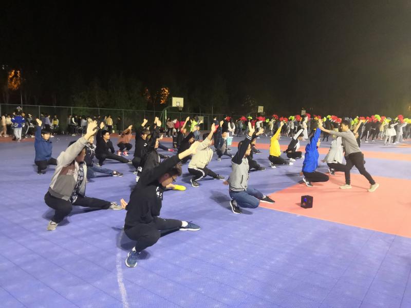 每晚九点整,32名男生准时来到集合地点开始训练。文艺部部员作为教练,耐心细致地讲解每一个动作要领,同学们仔细地聆听、认真地配合。随着一声声口号的起起落落,同学们凌乱的动作逐渐变得整齐划一,刚劲有力。大体训练过后,教练开始对每个同学的每个动作进行针对性指导,一次次的细心检查、一次次的耐心纠正、一次次的亲自示范,让同学们的动作质量得到了显著的提升。不积跬步无以至千里,不积小流无以成江河。训练接近尾声,再次合练时同学们步调一致,每一个动作皆有霹雷之势。同学们勤奋努力、团结奉献、刻苦训练的精神得到教练的认可和赞许,大家脸上都露出了欣慰的笑容。