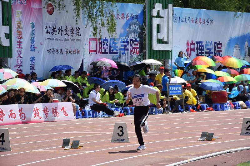 2017级放射二班刘沁同学、预防三班刘燕同学参加了比赛。但在比赛开始之前,刘沁同学由于身体突发不适而无缘比赛,在学生会体育部部员的陪同下回到休息区调整。