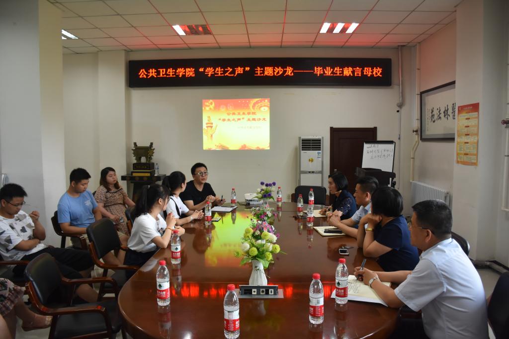 院长刘雅文,党委书记赵国利,党委副书记兼副院长、2014级辅导员刘丽,副院长魏国志,教科研办公室主任李鹏出席本次会议,2019届毕业生代表参会并积极献言献策。
