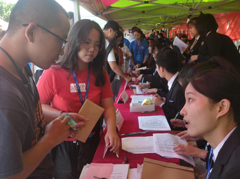 、就业前景,为学生拿持行李、引路回寝,各司其职,无微不至,带给了学生和家长轻松愉悦的入学体验。尽管天气阴晴不定,不时下起小雨,他们依旧不辞辛劳,坚守在自己的岗位上,以确保迎新工作有条不紊的进行。