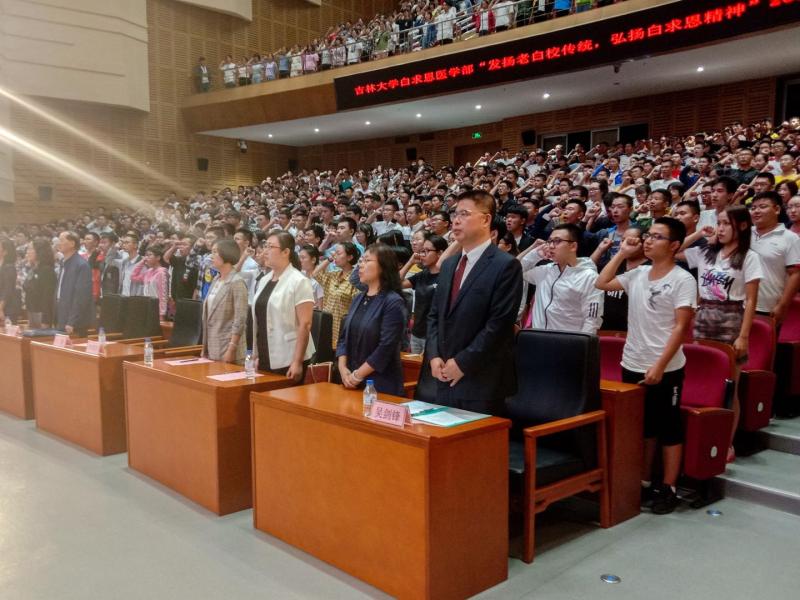 为了发扬老白校传统,弘扬白求恩精神,同时增强新生对白求恩医学部的历史认知和自豪感,8月26日上午九时,白求恩医学部在中心校区鼎新大礼堂举办2019级新生入学教育大会。白求恩精神研究会常务副会长马国庆、白求恩医学部学部长李凡及全体学部领导、医学部各学院主管本科生工作副书记、医学部学工办全体成员、2019级新生辅导员、辅导员助理以及全体新生出席了本次大会。白求恩医学部学生工作办公室主任吴剑锋主持了本次大会。