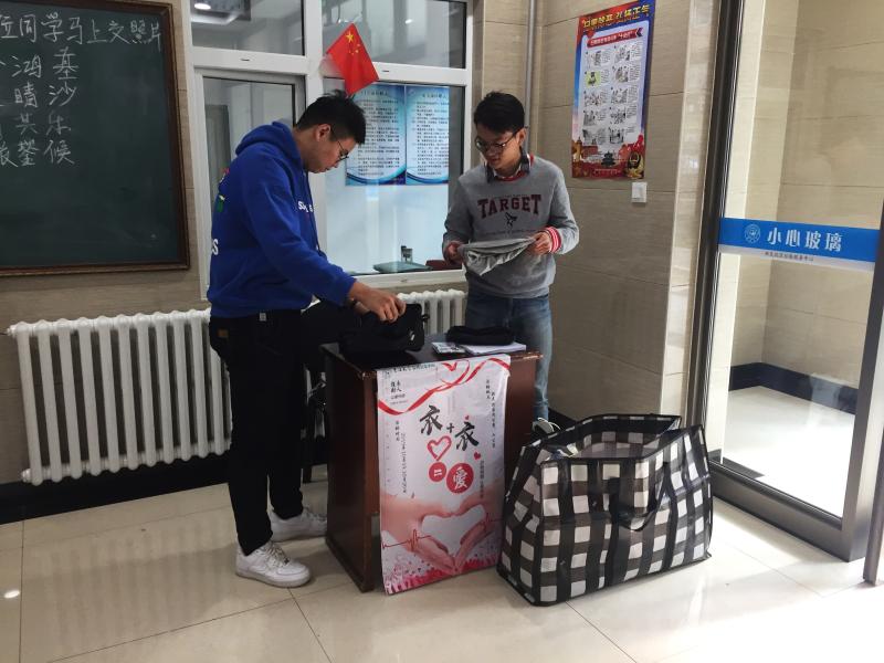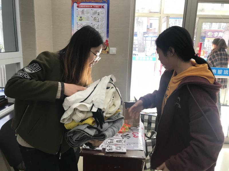 10月19日上午九时,志愿者们提前来到事先安排好的工作地点,将桌椅、收纳袋等物品整齐地摆放在各学生公寓门前,不久便有同学陆续来到捐赠地点,或单件捐出,或成箱搬来,热情积极地献出自己的一份爱心。为了表达对捐赠者的感谢,志愿者们还准备了精美的小礼品赠送给热心捐献衣物的同学。为期两天的捐献活动结束后,志愿者们对回收的旧衣物进行了检查与分类,并筛选出符合标准的十袋衣物整理打包,通过事先联系好的吉林华益爱心协会捐献给了需要的人们。志愿者们纷纷表示,通过参加本次活动,自己更加深刻地理解了党全心全意为人民服务的宗旨,今后也将继续发挥党员先锋模范作用,参与到志愿活动中去,贡献出自己的一份力量。