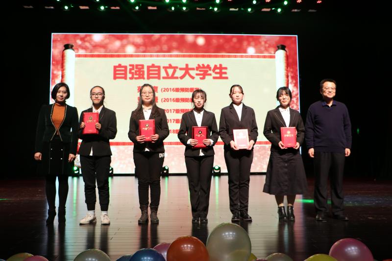 2019年度“优秀班级”、“自立自强大学生”、“十佳大学生”称号的代表及同学依次上台领取证书,并与各位领导合影留念。颁奖典礼的最后,刘雅文院长发表了精彩的讲话,激励新生要继往开来、脚踏实地、锐意进取,取得更加优异的成绩,成为更加优秀的公卫学子。