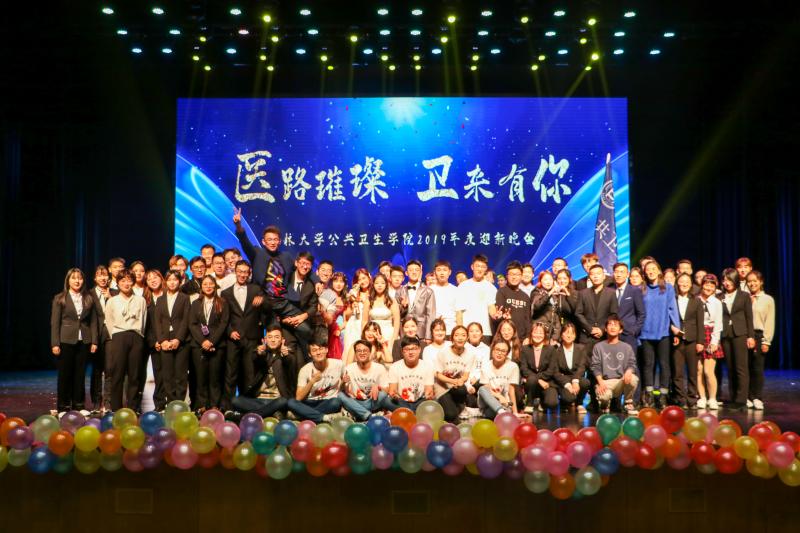 晚会上,主持人用优美的语句串联起一个个精彩的节目,穿插于节目中激动人心的抽奖环节使观众们情绪高涨,笑声不断。最后,晚会在寄托了公卫学子美好祝愿的合唱表演《筑梦未来》中接近了尾声。领导、嘉宾与演职人员登上舞台合影留念。至此,晚会圆满落幕。