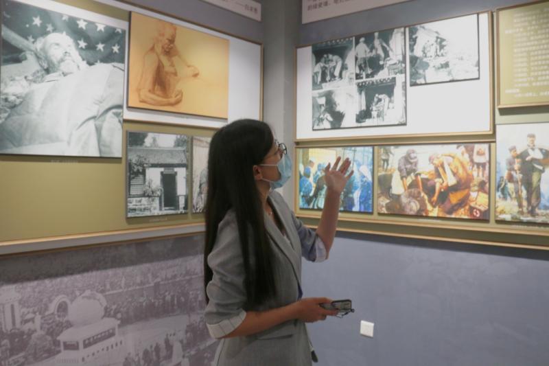 首先,进入一楼展厅后,霍睿老师为同学们介绍了老白校的历史发展脉络,详实的讲解让同学们充分认识到了创校之艰、建校之难。葛公村白求恩学校旧址所在地的微缩模型,让同学们知晓了前辈学习、生活和工作环境的条件艰苦;白银坨老白校学子遇难群雕像,让同学们不由得为这些鲜活生命逝去感到惋惜,深刻认识到如今成就的来之不易。从晋察冀军区卫生学校,到白求恩医科大学,再到中国人民解放军第一军医大学,再至如今的擦边短剧