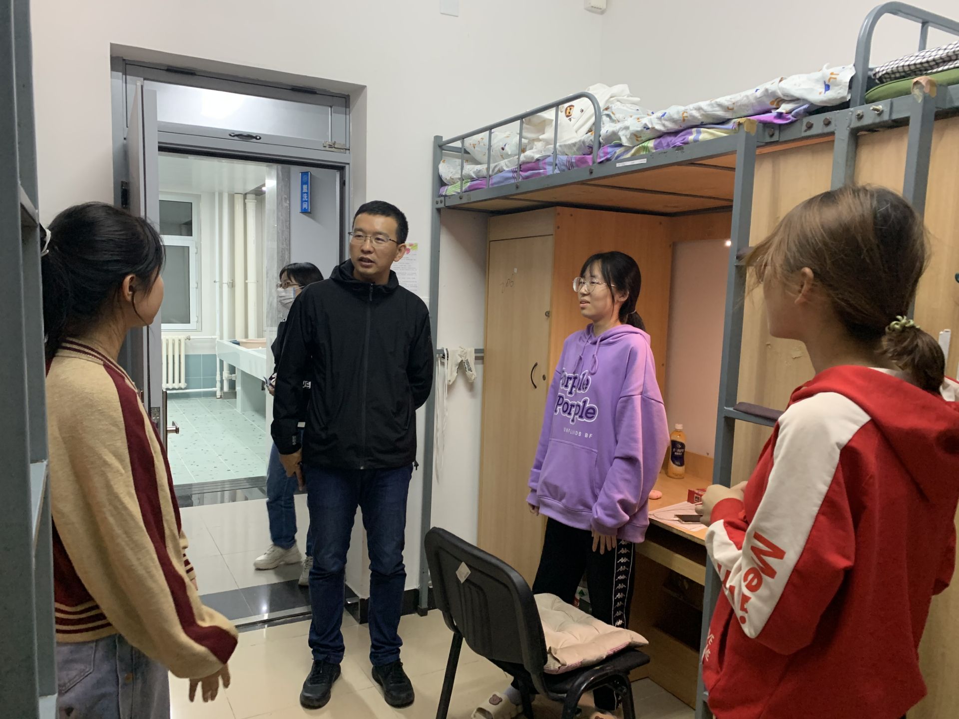 苏国范老师走进寝室,了解同学们的生活状况,并针对如何处理寝室关系,如何快速融入班集体,以及如何适应大学生活等提出了宝贵意见。同学们十分认真的听取了老师的建议。在此次查寝的过程中,苏国范老师与同学们进行了友好的交流,了解同学们的学习和生活,家乡在哪里,让本地同学尽地主之谊,帮助外地同学快速的融入宿舍生活,并提醒男同学不能天天打游戏,要平衡学习和生活。并且对于评选经济关注对象等事宜进行了讲解,鼓励家庭困难的同学了解并申请经济关注对象。