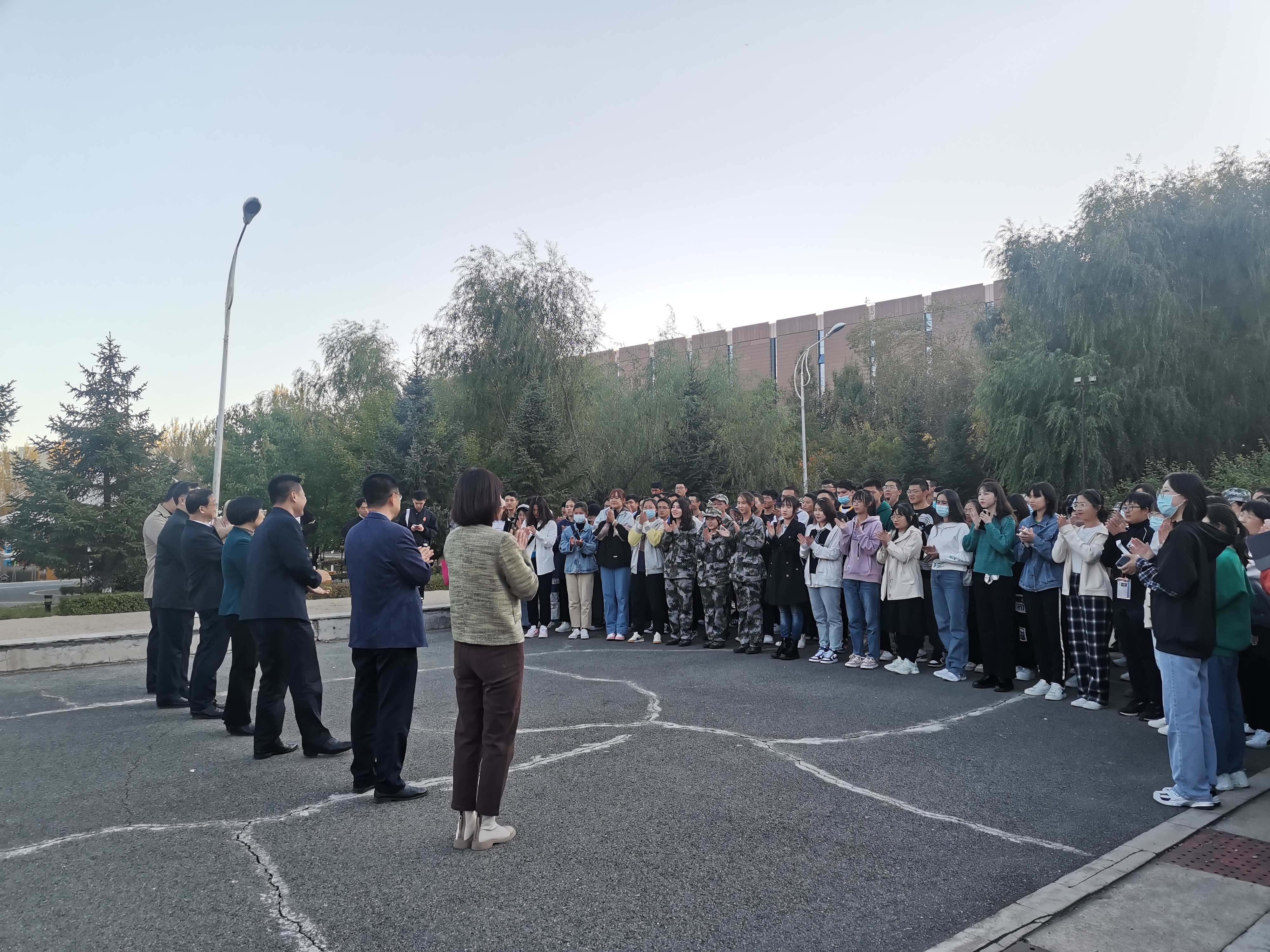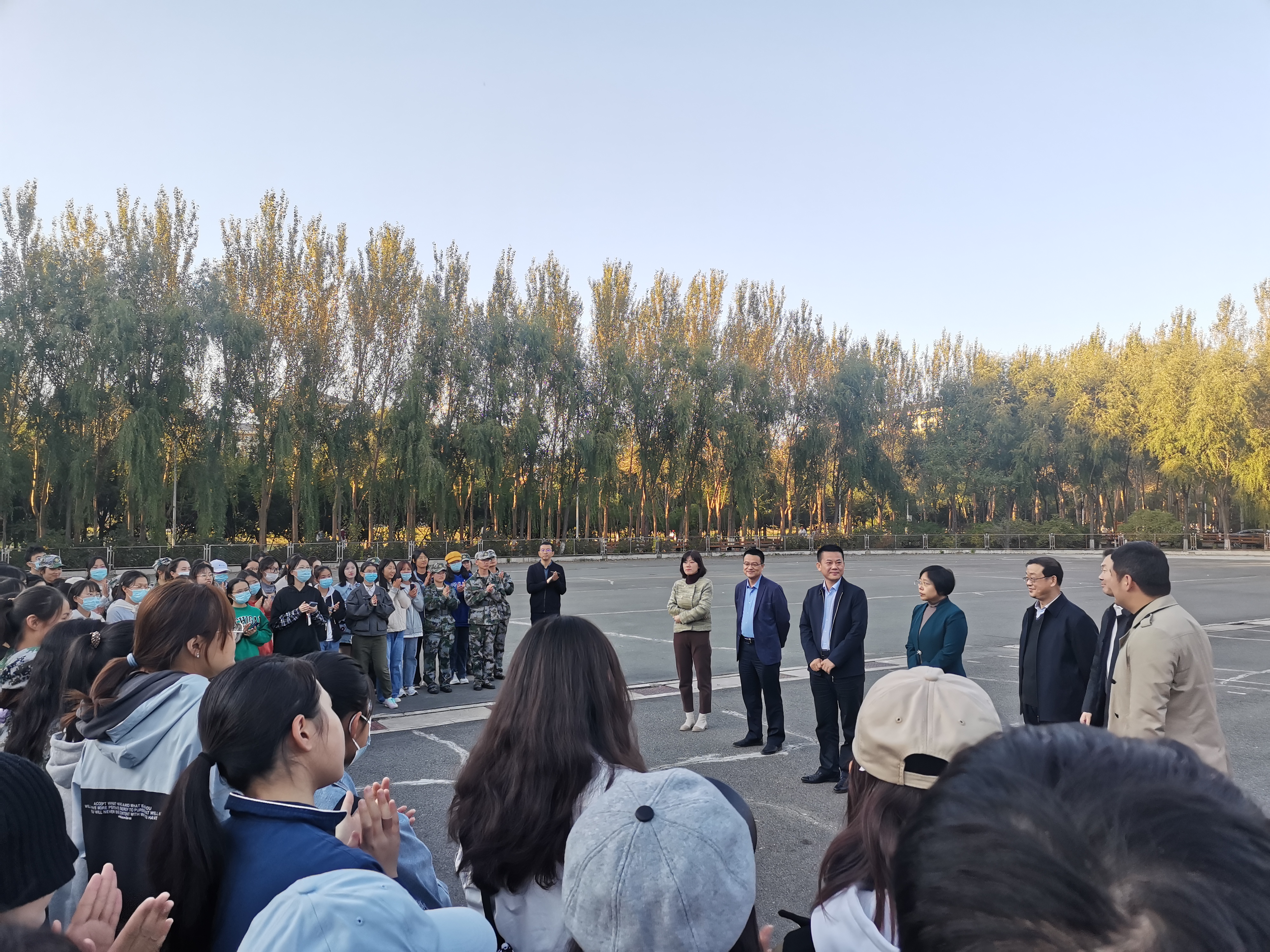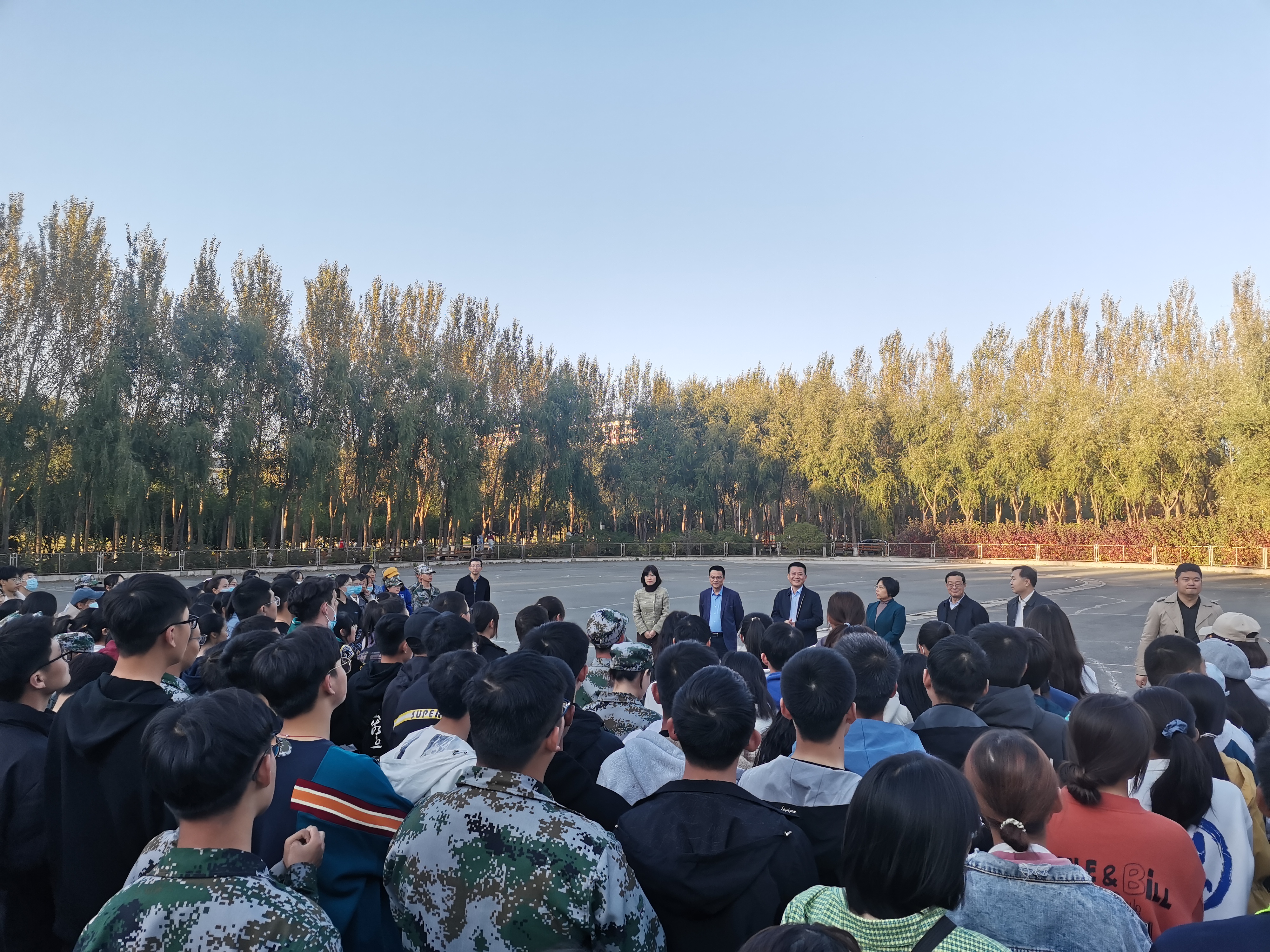 中心校区轮滑场为新生讲授开学第一节思政课。出席本次活动的学院领导老师还有擦边短剧