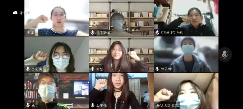 第二环节,由本科生第一党支部书记冷贺璇向全体本科生党员发起倡议。希望同学们要提高政治站位,坚定必胜信心,敢于冲锋在前,勇挑责任重担,践行初心使命,凝聚磅礴伟力。紧接着,本科生第二党支部书记苏国范、第三党支部书记刘心怡进行交流发言,他们对各位学生党员在疫情大难到来时表现出的担当精神和无私奉献感到欣慰,更希望各位同学能够在疫情攻坚战中继续坚持,毫不松懈。党委副书记刘金超书记作出总结发言,他提醒同学们,面对国家有需要、社会有需要的时候,党员理应冲在最前方,但也一定要在保护好自己的前提下展开工作。要明确政治站位,勇挑重担,不忘初心使命。