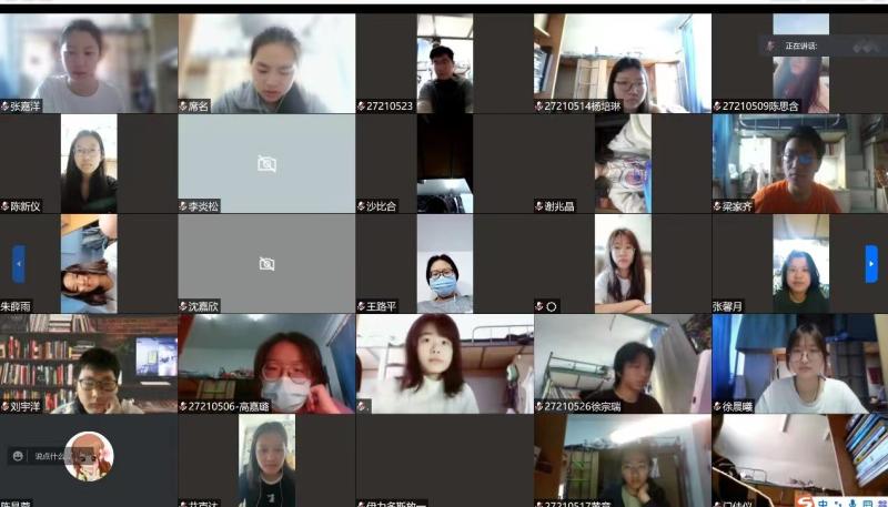 其次,通过视频的方式回顾吉大的抗击疫情之路,同学们积极发言讲述自己的抗疫经历,分享身边的抗疫故事,表达自己对于志愿者们无私奉献的伟大精神的理解,展现出极大的抗疫热情和抗疫决心。面对突如其来的新冠肺炎疫情,老师、领导、医务人员和志愿者们尽己所能,挺身而出。各级党委和政府及时响应,严格执行“外防输入、内防扩散”的策略,守护人民的生命健康。老师和学校坚守岗位,一句“我们一定把饭供上"使大家热泪盈眶。