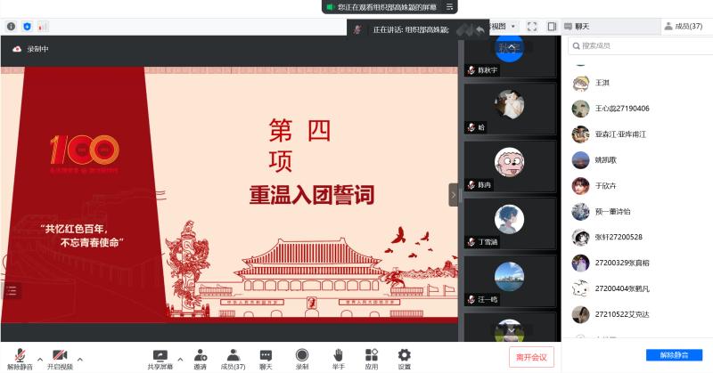 团委组织部于5月4日在线上举办了“共忆红色百年,不忘青年使命”学生之声主题沙龙活动。本次活动由各年级本科生团员参与。