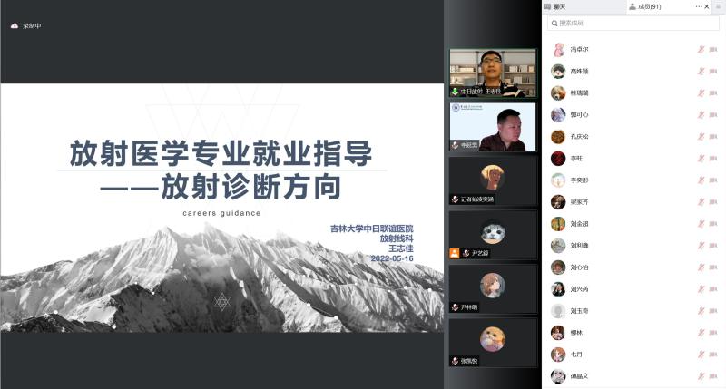 放射医学的发展现状和时代背景下放射医学的就业前景,然后分享自己对于放射专业的看法并且表达对柳教授和王教授的欢迎。而后,特邀嘉宾柳教授进行演讲,柳教授用自己丰富的工作经验向同学们说明医院平台与专业选择的重要性和考虑因素,通过一些实例展示放射科的意义与作用,并且告诫同学们应该保持终身学习的热情和专注。