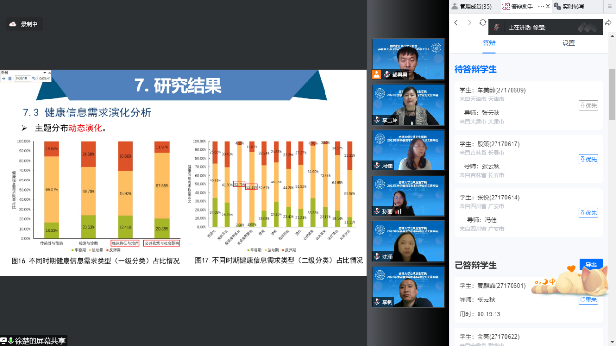 本科毕业答辩数字化平台(iThesis)”,充分利用信息化技术,答辩过程严谨规范、秩序井然。全院预防医学、放射医学和信息管理与信息系统三个专业共177名同学顺利通过本科毕业论文答辩。