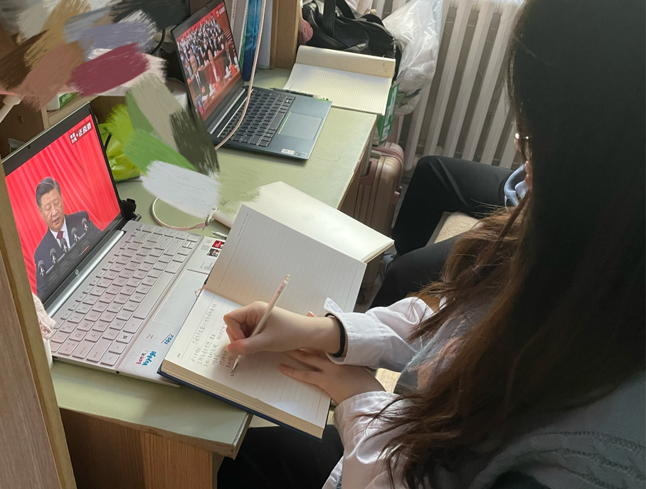 于昊彤同学从会议内容中体会到发展是执政兴国的的第一要务,要以中国式现代化推进中华民族伟大复兴,坚持中国共产党的领导,着力推动高质量发展,提高人民生活品质;谢兆晶同学深深感悟到一代人有一代人的光荣使命,一代人有一代人的漫漫长征,我们要以赤诚之心,甘将热血浜中华,以数万沙小之身肩负光辉前程。与此同时,李茹同学也表示时代在呼唤着我们,人民期待着我们,唯有矢志不渝,笃行不怠,方能不负时代,不负人民!