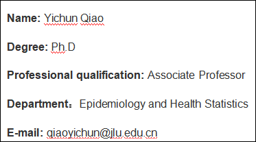 • 2016-present:Associate Professor inSchool of Public Health, Jilin University