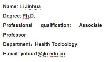 • July 2017–Now, Associate Professor, Department of Health Toxicology, School of Public Health, Jilin University, China.