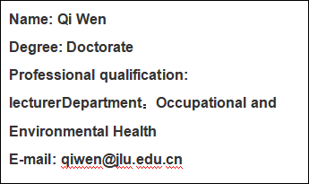• 2013.09-2016.06 Master of Labor Health and Environmental Health, School of Public Health, Jilin University